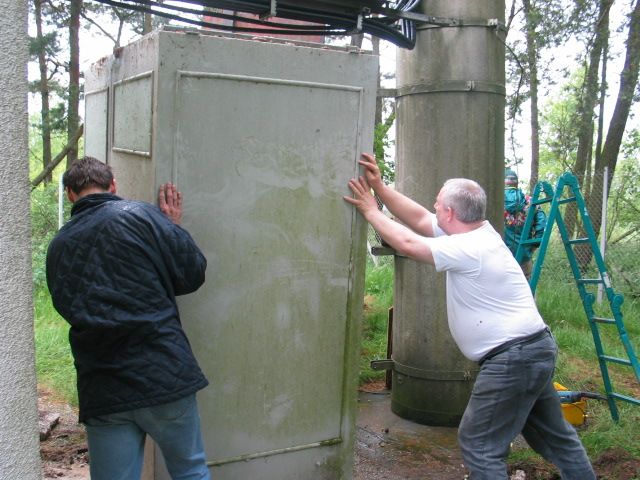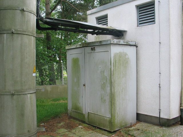 In diesen zusammengesetzten ehemaligen Telefonzellen war das Relais untergebracht.