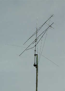 Im ausgebauten Dachgeschoss befindet sich nun unsere Clubstation DFØNG (NG = Niedergrafschaft). Hinter dem OV-Heim steht der Antennenmast mit diesen Antennen, die schon seit mehr als 20 Jahren ihren Dienst tun.