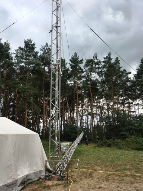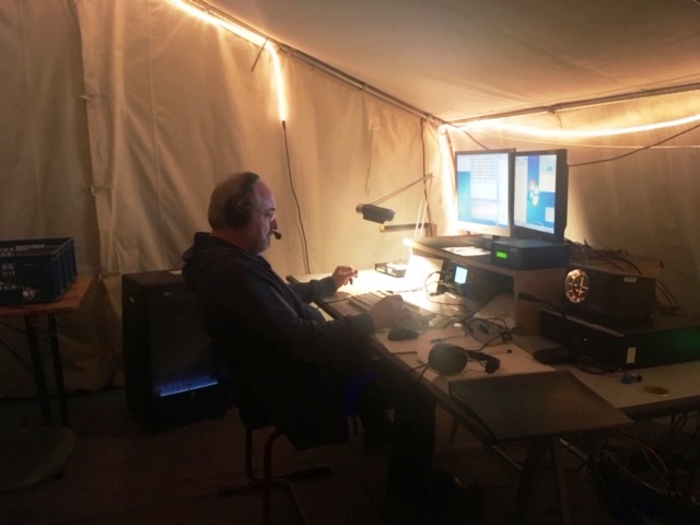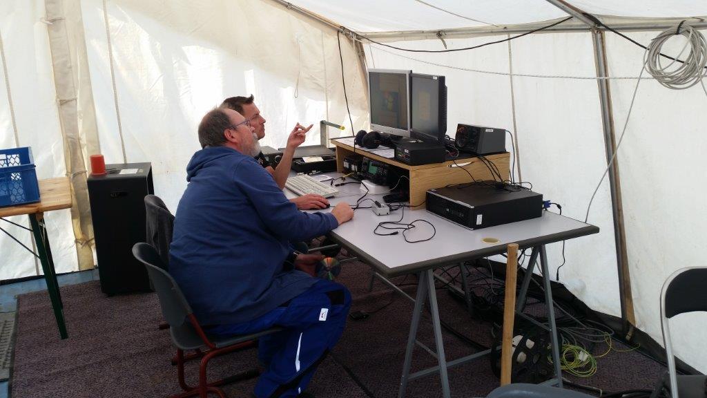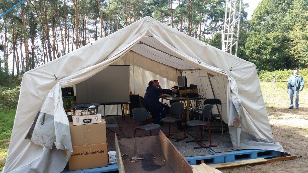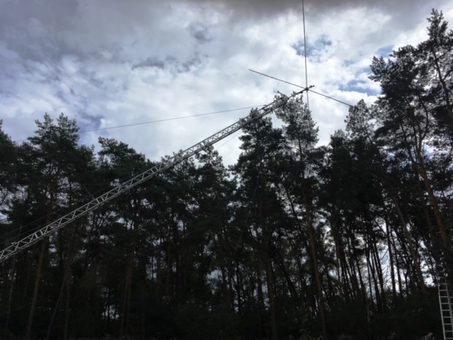 IARU Region 1 Fieldday 2019Der Fieldday-Contest, oder genauer der IARU-Region-1-Fieldday, hat das Ziel, den Amateurfunk in freier Natur und mit einer vom Netz unabhängigen Stromversorgung zu fördern. Da eine Fieldday-Teilnahme für Teams generell leichter und unterhaltsamer ist, und weil Mehrmannstationen in besonderer Weise für die Clubmeisterschaft gewertet werden, nehmen Jahr für Jahr etwa 100 Ortsverbände sowohl am CW-Fieldday im Juni als auch am SSB-Fieldday im September teil [Quelle: DARC]. Schon im Jahr 2016 haben sich Funkamateure aus den Fielddayteams der Ortsverbände L23 (Wesel) und I43 (Niedergrafschaft) zu einer gemeinschaftlichen Contestgruppe zusammen getan, um seitdem am IARU Region 1 Fieldday teilzunehmen. Die Contestgruppe trifft sich in unregelmäßigen Abständen, um die jeweils anstehenden Fielddays zu planen. Jedes Mitglied zahlt pro Jahr 60 EUR in eine von Claus, DL1KRC, verwaltete Kasse – davon werden die Aufwände des Fielddays (Benzin für die Generatoren, Gas für den Heizofen, Reparaturen sowie die Verpflegung während des Fielddays) bestritten. Auch in diesem Jahr stand nun der Fieldday vom 7. auf den 8. September an. Als Austragungsort diente wieder eine Wiese in der Nähe des QTHs von Norbert, DL1EBN, in Esche (JO32LM76DS). Die Contestgruppe hatte zuvor beschlossen, diesmal mit dem Rufzeichen des Ortsverbandes L23 (Wesel), DL4L, an den Start zu gehen. Während beim ersten Fieldday eine Delta Loop mit rund 80m Länge an drei Masten zum Einsatz kam, wurde diesmal – neben Dipolen für 80m und 160m – ein Spiderbeam für die Bänder 10m, 15m, 20m und 40m eingesetzt. Die Ausrüstung umfasste